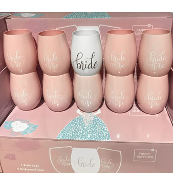 Quick view Sparklers.us 10 Pink Stemless Wine Cups 1 Bride + 9 Bride Tribe Glasses Pink White plastic bachelorette bridesmaid maid of honor (Set of 10) QUANTITY: 10 Piece Set (1 Bride & 9 Bride Tribe). COLOR: Pink GREAT GIFT IDEA - Not sure what … Now $30.99 Add to Cart